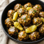 If you’ve never tried Mississippi-style anything, you’re in for a serious treat. The combination of ranch seasoning, au jus gravy mix, butter, and pepperoncini peppers creates this impossibly savory, slightly tangy sauce that coats every single meatball.