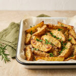 - Crispy parmesan crust. The parmesan melts and crisps directly onto the potatoes during roasting. It creates a salty, golden, crunchy coating that is unbelievably good.